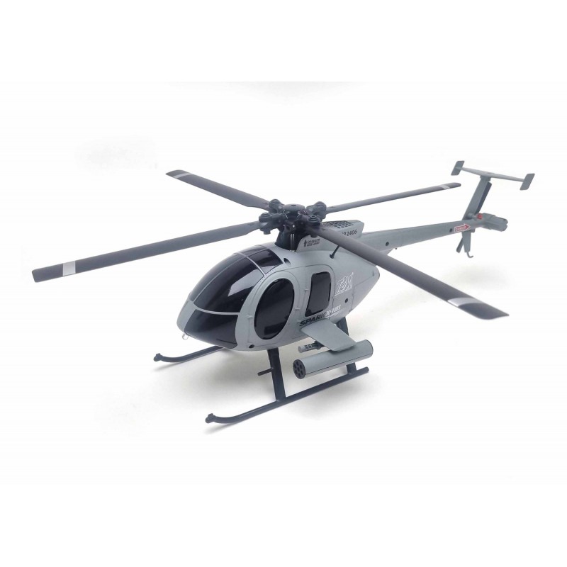 Hélicoptère radiocommandé de format intermédiaire. Destiné aux débutants, il est très facile à piloter grâce à son mono-rotor, sa radiocommande 4 voies 2,4GHz et son gyroscope intégré. Il est possible de choisir le mode de pilotage Débutant ou Expert. Son vol est très stable dans toutes les directions, translations avant/arrière, gauche/droite, pivotement gauche/droite. Son châssis et sa carrosserie scale ainsi que son train d’atterrissage en plastique robuste en font un modèle léger, performant et élégant. Un feu clignotant est situé à l’avant de la cabine.