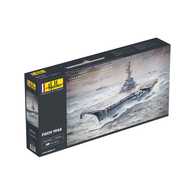 La construction du Foch, jumeau du porte-avions Clémenceau, fut entreprise aux chantiers de l'Atlantique à Saint-Nazaire. Mis sur cale en février 1957, il sera remorqué à Brest pour achèvement. La construction du porte-avions se poursuit à Brest du 13 juillet 1959 au 23 juillet 1960, date à laquelle le bâtiment est lancé. Son entrée au service actif aura lieu le 15 juillet 1963. Initialement basé à Brest, il sera affecté à Toulon de 1976 à la fin de sa carrière française. Long de 265 m et doté d'une piste oblique de 165 m, il permettait la mise en oeuvre d'une aviation d'assaut, d'interception, de reconnaissance et de lutte anti-sousmarine.